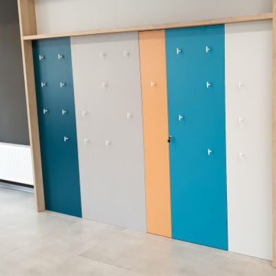 W stylu nowoczesnym charakterystyczna jest prostota, funkcjonalność i minimalizm, który kładzie nacisk na zapewnienie jak największej przestrzeni użytkowej. Ważny dla samopoczucia w pomieszczeniach jest kolorystyczny design. Jednak z kolorami nie można przesadzić, gdyż zbyt duża różnorodność barw potrafi wprowadzić w pomieszczeniach niemały chaos. Jeśli stawiamy na kolorowe meble, ważne jest by znalazły się one na odpowiednio zrównoważonym tle. W tej realizacji kolorowe szafy biurowe i odzieżowe idealnie się w nie wpasowują. Minimalistyczna szafa ubraniowa o prostym kształcie znajdująca się na recepcji nadaje niecodziennego stylu, a jej pojemność pozwoli na umieszczenie w niej dużej ilości potrzebnych rzeczy. Recepcja została zorganizowana w sposób kompleksowy i nie zabrakło Kontenera z szufladami i szafki aktowej na dokumenty.