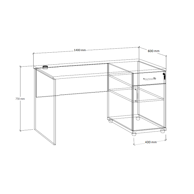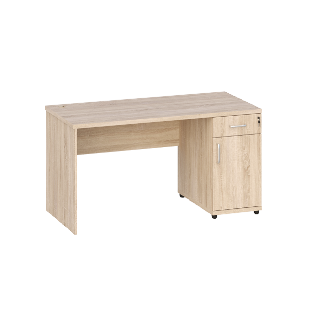 Biurko o wymiarach 140 x 60 cm (właściwy wymiar 138,5 x 60 cm) z blatem grubości 18 mm jest standardowym i najczęściej wybieranym rodzajem biurka. Często wykorzystywane jako biurko pracownicze lub biurko nauczycielskie. W standardzie szuflada posiada zamek. Szafka bez zamka - możliwość dokupienia jako element dodatkowy.