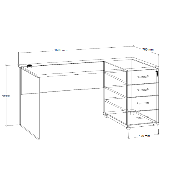 Biurko o wymiarach 160 x 70 cm z blatem grubości 18 mm jest standardowym i najczęściej wybieranym rodzajem biurka. Często wykorzystywane jako biurko pracownicze lub biurko nauczycielskie. W standardzie szuflady zamykane zamkiem centralnym.