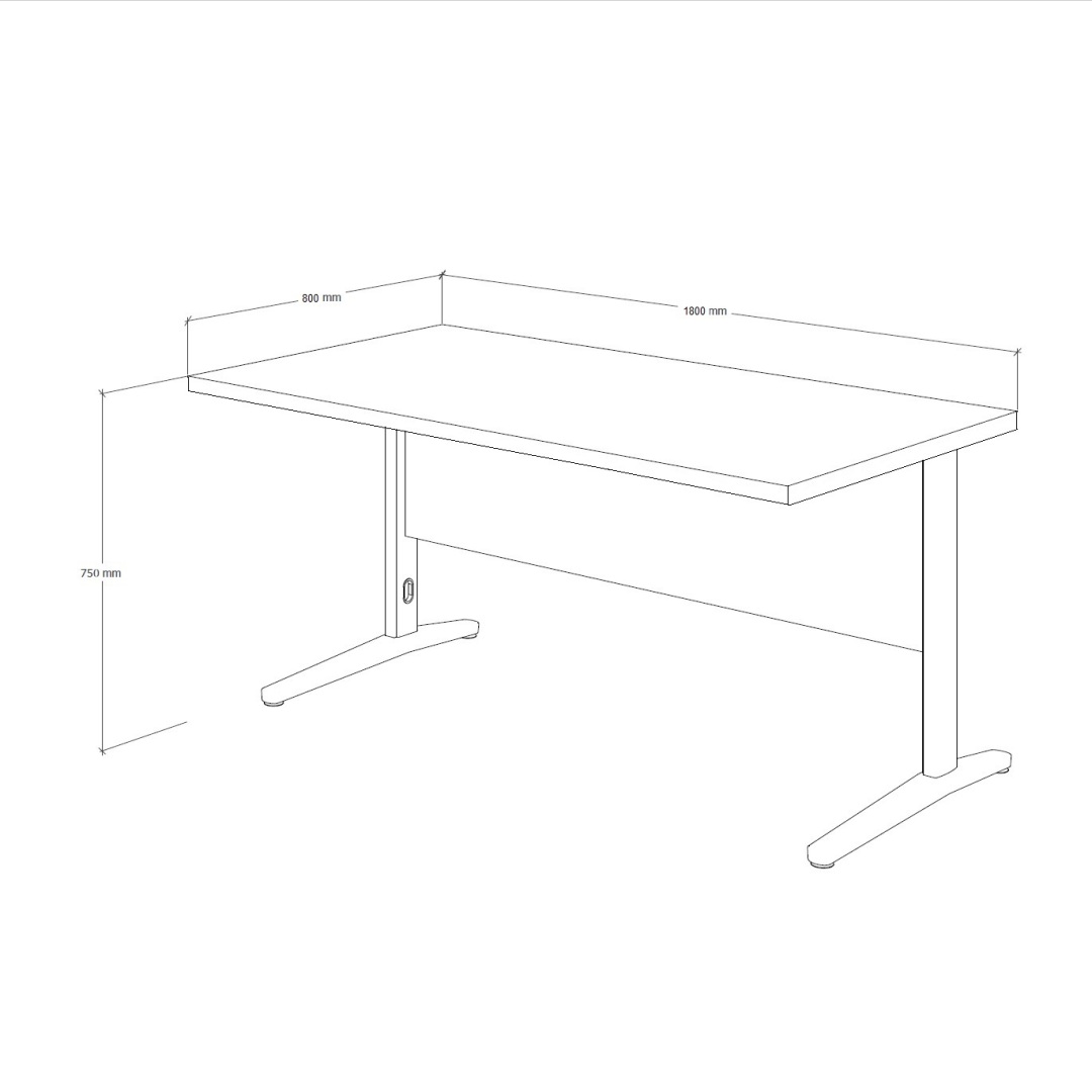Biurko proste z nogami metalowymi o wymiarze 1680 x 70 cm. Blat grubości 28 mm. Nogi posiadają pionowy przepust kablowy, w którym można ukryć kable.