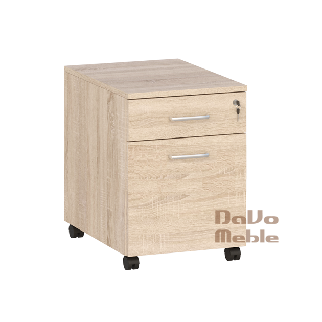 Kontenerek biurowy z dwoma szufladami z zamkiem. Mebel dedykowany do minimalistycznych i kompaktowych powierzchni biurowych i małych biur domowych/gabinetów. To niewielki, ale bardzo pojemny pomocnik biurowy, który zmieści się wszędzie. Zajmuje mało miejsca a daje ogromne możliwości zagospodarowania dokumentów. Wysokość mebla wynosi 470 mm, szerokość – 430 mm, a głębokość – 550 mm. Kontenerek może być zastosowany wraz z biurkami o nogach metalowych, biurkami narożnymi, stołami konferencyjnymi i zestawami gabinetowymi lub jako dodatkowy, mobilny pomocnik i uzupełnienie obecnej aranżacji biurowej.