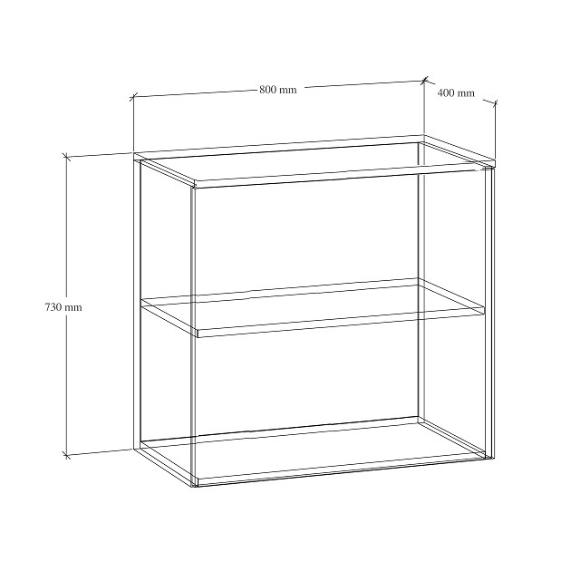 Nadstawka wykonana z płyty melaminowej o grubości 18 mm, dzięki czemu jest solidna i stabilna. Jej wymiary wynoszą: wysokość – 730 mm; szerokość – 800 mm; głębokość – 400 mm.