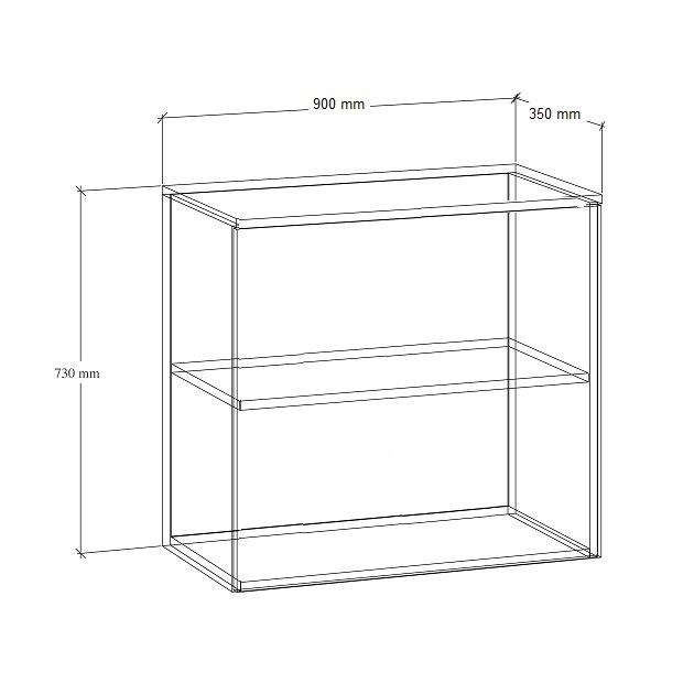 Nadstawka wykonana z płyty melaminowej o grubości 18 mm, dzięki czemu jest solidna i stabilna. Jej wymiary wynoszą: wysokość – 730 mm; szerokość – 900 mm; głębokość – 350 mm.