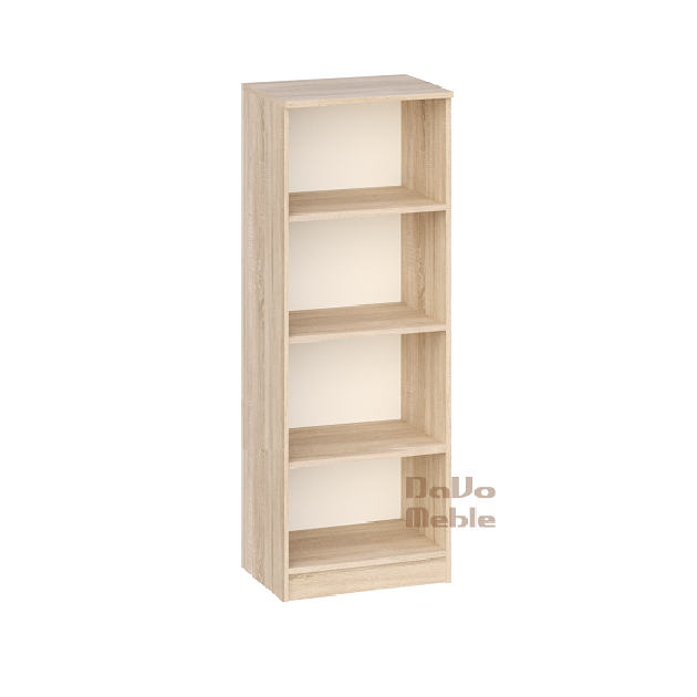 Regał otwarty został wykonany z płyty melaminowanej (płyty meblowej) o grubości 18 mm z wieńcem górnym o grubości 18 mm (daszek) w jednej z oferowanych opcji kolorystycznych – do wyboru są także kolory z poza palety (wycena indywidualna). Często wykonywane są przez nas w wersji dwukolorowej. W efekcie mebel można bez problemu dopasować do estetyki wnętrza poprzez dopasowanie lub też kontrastowanie kolorystyczne. Krawędzie mebla zostały zabezpieczone trwałym obrzeżem ABS o grubości 1 mm w kolorze dedykowanym przez producenta dla danej płyty, która zapewnia trwałość obrzeża.