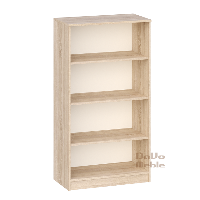 Regał otwarty został wykonany z płyty melaminowanej (płyty meblowej) o grubości 18 mm z wieńcem górnym o grubości 18 mm (daszek) w jednej z oferowanych opcji kolorystycznych – do wyboru są także kolory z poza palety (wycena indywidualna). Często wykonywane są przez nas w wersji dwukolorowej. W efekcie mebel można bez problemu dopasować do estetyki wnętrza poprzez dopasowanie lub też kontrastowanie kolorystyczne. Krawędzie mebla zostały zabezpieczone trwałym obrzeżem ABS o grubości 1 mm w kolorze dedykowanym przez producenta dla danej płyty, która zapewnia trwałość obrzeża.