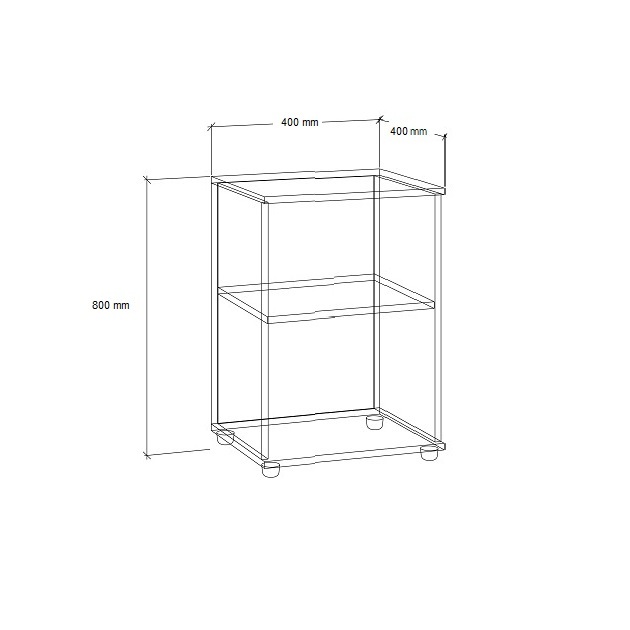 Wysokość mebla wynosi około 780 mm, szerokość – 400 mm, a głębokość – 400 mm. Idealnie łączy się z Biurkiem Biurowym Prostym, biurkiem narożnym z płyty meblowej jak i uzupełnia przestrzeń sali konferencyjnej. Świetnie sprawdza się, jako pomocnik lub szafka pod drukarkę w przestrzeni współdzielonej typu Open Space.