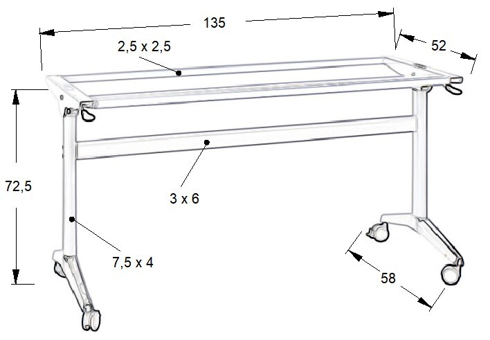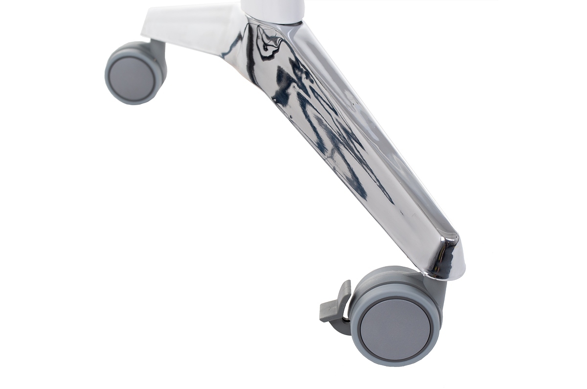Nogi stołu wykonane w całości ze stali, malowane proszkowo na kolor biały, stopy chromowane. Kółka,w tym dwa wyposażone w hamulec.