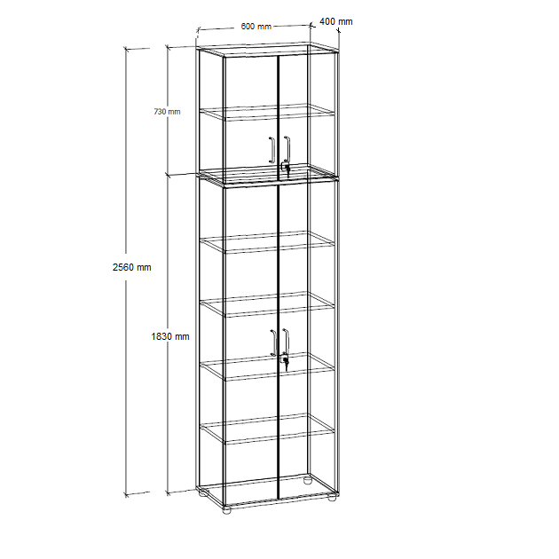 | Wysokość szafy z nadstawką: | ~2560 mm |