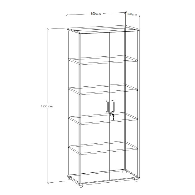 Szafa aktowa z drzwiami o wymiarach 180/80/35. Szafa została wykonana z płyty melaminowej o grubości 18 mm, dzięki czemu jest solidna i stabilna. Jej wymiary wynoszą: wysokość – 1830 mm; szerokość – 600 mm; głębokość – 350 mm. Posiada stopki zapobiegające zarysowaniom podłóg oraz dające możliwość regulacji poziomu szaf w zakresie 15 mm.
