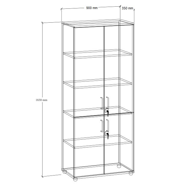 Szafa została wykonana z płyty melaminowej o grubości 18 mm, dzięki czemu jest solidna i stabilna. Jej wymiary wynoszą: wysokość – 1830 mm; szerokość – 900 mm; głębokość – 350 mm. Posiada stopki zapobiegające zarysowaniom podłóg oraz dające możliwość regulacji poziomu szaf w zakresie 15 mm, dzięki czemu można ją dostosować do indywidualnych preferencji użytkowników. Można w niej przechowywać nawet duże ilości segregatorów o sporej wadze. W szafie mieści się aż pięć rzędów segregatorów. Kupując dwie szafy aktowe, można więc uzyskać sporą przestrzeń magazynową do zapełnienia.