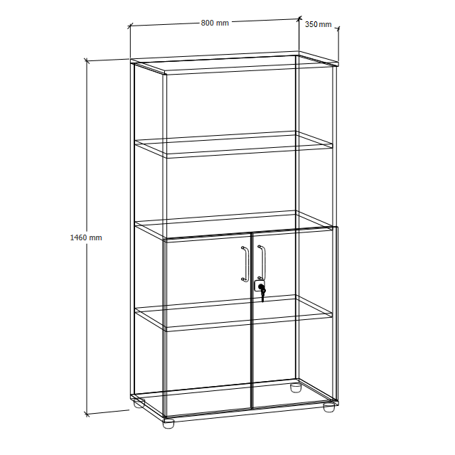 Szafa została wykonana z płyty melaminowej o grubości 18 mm, dzięki czemu jest solidna i stabilna. Jej wymiary wynoszą: wysokość – 1460 mm; szerokość – 800 mm; głębokość – 350 mm. Posiada stopki zapobiegające zarysowaniom podłóg oraz dające możliwość regulacji poziomu szaf w zakresie 15 mm, dzięki czemu można ją dostosować do indywidualnych preferencji użytkowników. Można w niej przechowywać nawet duże ilości segregatorów o sporej wadze. W szafie mieszaczą się cztery rzędy segregatorów. Kupując dwie szafy aktowe, można więc uzyskać sporą przestrzeń magazynową do zapełnienia.