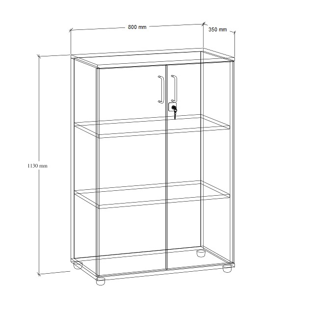 Wykonana z płyty melaminowej o grubości 18 mm, dzięki czemu jest solidna i stabilna. Jej wymiary wynoszą: wysokość – 1130 mm; szerokość – 800 mm; głębokość – 350 mm.
