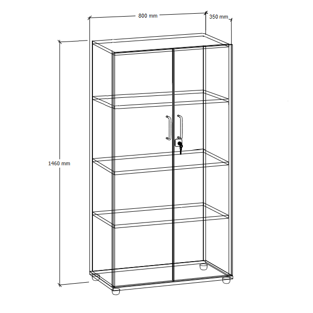 Wykonana z płyty melaminowej o grubości 18 mm, dzięki czemu jest solidna i stabilna. Jej wymiary wynoszą: wysokość – 1460 mm; szerokość – 800 mm; głębokość – 350 mm.