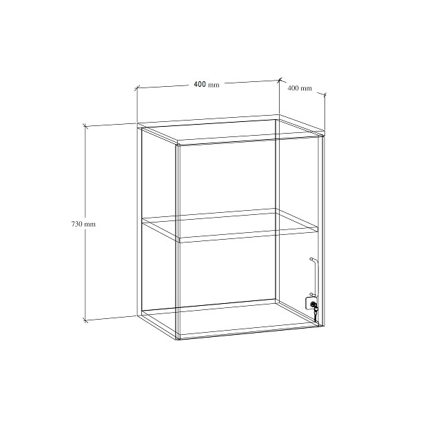 Szafka wykonana z płyty melaminowej o grubości 18 mm. Jej wymiary wynoszą: wysokość – 730 mm; szerokość – 400 mm; głębokość – 400 mm.