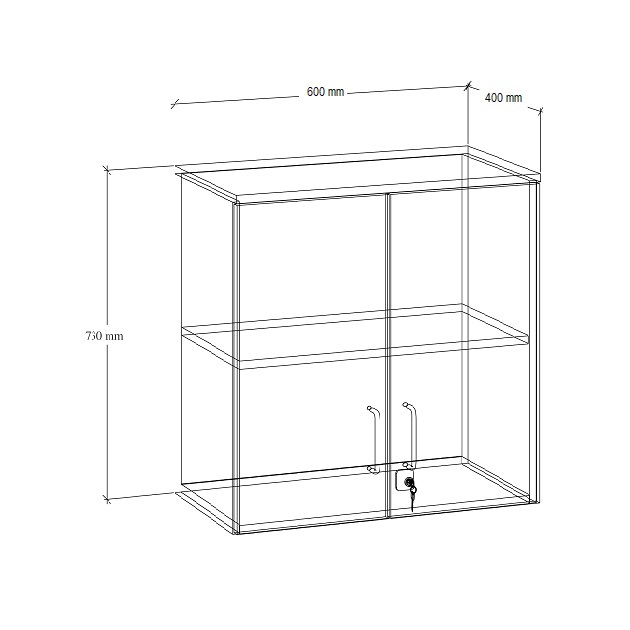 Szafka wykonana z płyty melaminowej o grubości 18 mm. Jej wymiary wynoszą: wysokość – 730 mm; szerokość – 600 mm; głębokość – 400 mm.